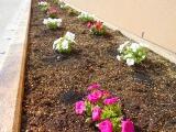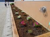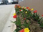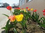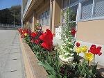 寺尾小学校の花壇のチューリップがきれいに咲きました。みなさんが元気に登校してくるのを待っているようです。