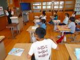 5時間目の3年生の外国語活動の授業。ALTの先生も一緒です。