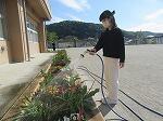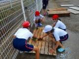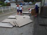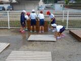 更衣室の「すのこ」の掃除を担当した5年生の女子は、更衣室から出した多くの「すのこ」を前にして、どうするか悩んだ後、どのように洗ったら効率よくできるかみんなで意見を出し合い、役割を決め協力してやっていました。その様子を見て感動しました。つい、大人が口や手を出してしまいがちですが、子供達の力はすごいですね。