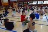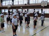 本日、朝の活動の時間に、全児童が体育館に集まって「プール開き」の集会を行いました。本来でしたらプールサイドで行う予定でしたが、雨のため体育館で行いました。