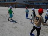 いつもは、おにごっこやブランコ、鉄棒などいろいろな場所にいる光景が見られますが、、、。全員ドッチボール。