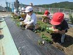 苺摘みからの田植え。5年生頑張りました!地域の皆様ありがとうございます。