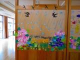 本日、一階多目的室の廊下側の壁面に、地域ボランティアの方が折り紙などを使ってこの時期にふさわしい景色を表現してくれました。とても素敵です。