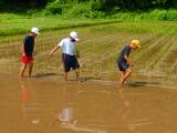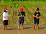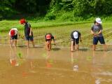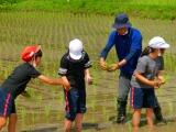 2時間目に、5年生児童が地域の方の協力のもと田植え体験を行いました。