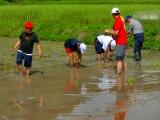 田植えの仕方を教えていただいた後、そろりそろりと水の中へ。