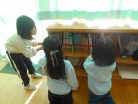 大きな絵本や実物投影機を使うなど、子ども達のためにいろいろと工夫して読み聞かせをしています。