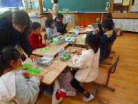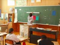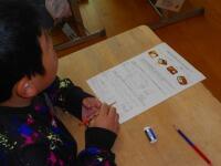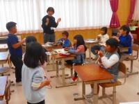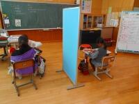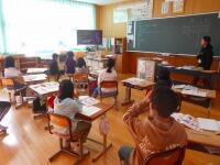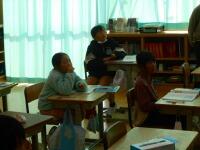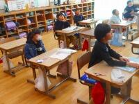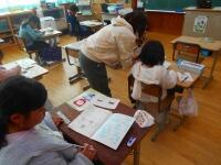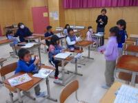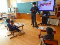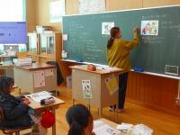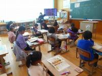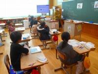 3年生は、算数です。分数について学習していました。できるだけ視覚的に理解できるようにワークシートを使っていました。先生も子供達の様子を見ながら、個別指導しています。