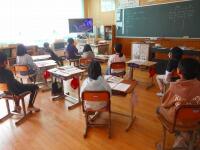 4年生は、算数です。小数同士の足し算の学習でした。先生が分かりやすく丁寧に授業を進めています。子供達も集中していました。