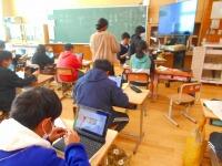 6年生も、算数です。比の学習でした。問題を考えるに当たり、先生や友達に相談しながら一人一人頑張って取り組んでいます。中学生を見据えて授業にも集中していました。