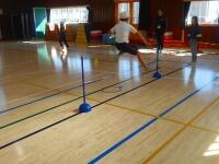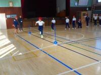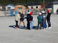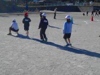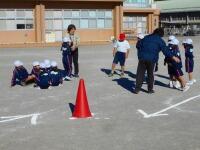カラーコーンを回って走るのが難しそうです。グループで協力して取り組んでいました。