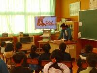 本日の朝の活動は、地域ボランティアの方による「読み聞かせ」です。