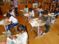 4年生は、算数です。テストで間違ったところをを見直していました。友達同士で教え合いながら確認して、先生にも見てもらっていました。他者に教えることと自分で答えを出すことはちょっと違います。人に教えることも自分の学びになりますね。