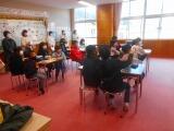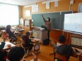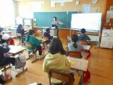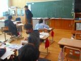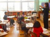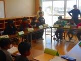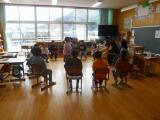 二年生は、教室でみんなで椅子に座って輪になり、ゲームをしていました。楽しそうですね。