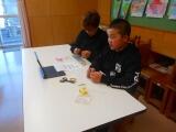 2年生は、色画用紙をカッターで切って窓のある建物を作っています。人それぞれ個性的で見ていてもとても楽しいです。素敵な建物を完成させてください!