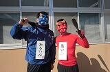 放送で節分についてのお話を聞いてから、少し早いのですが、本校では今日の給食が終わる頃の時間に豆まきを行いました。