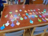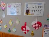 その一角で何か作っています。折り紙でハートバックを作っていました。