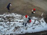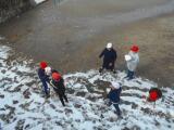外に目をやると、雪が残っているところで雪だるまを作ったり、雪遊びをしています。