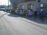 避難場所である寺尾中学校のセミナーハウスまでの避難経路を歩いて確認しました。「おかしも」(おさない、かけない、しゃべらない、もどらない)を守って整然と実施することができました。