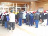 今回は、予告なしで、地震が発生し火災が起こったこととして実施しました。昼休み中なので各自が放送の合図で避難を開始します。