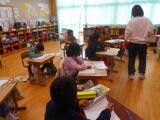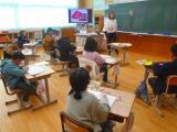 3年生は、算数です。初めての「小数」です。先生と一緒に丁寧に学習を進めていました。