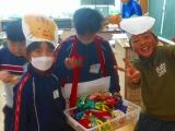 たこにんじんとして昇降口に飾ったところ「ナニコレ~」と子どもたちもおどろいています。