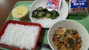 「ご飯・ふりかけ・牛乳・厚揚げマーボー炒め・きゅうりとだいこんの中華あえ