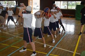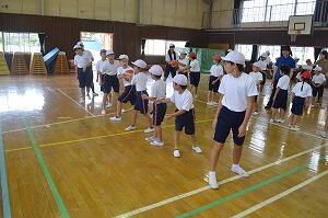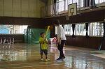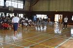 今日は、前日の雨のため校庭が使えません。体育館で行いました。