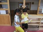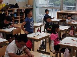 みんなの前でやり方を説明する1年生。上手に発表できました。