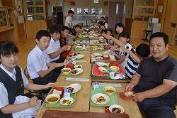 鑑賞会の後は中学生と寺尾小にもどり、中学生と一緒に給食を食べました。