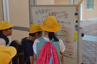 毎朝、登校した子供たちはメッセージを受け取り、元気に教室に向かっていきます。