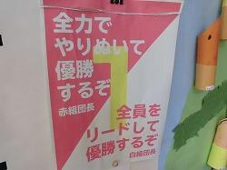 ↓ 運動会当日の朝、赤組、白組で最終うち合わせをしている様子。