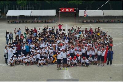 閉会式終了後、全校児童・教職員・PTA・地域の皆さんと一緒に写真を撮りました。