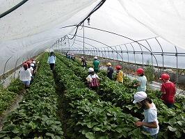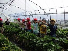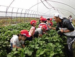 この行事は、ご近所のイチゴ農家のご厚意で、例年行っています。