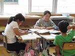 発展問題の解き方のポイントを、子どもたち同士で学び合う様子が、休み時間になっても続いていました。