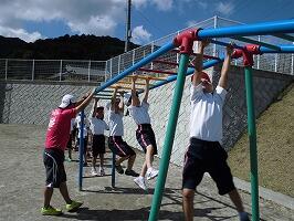 最後は、学年ごとに遊具を使って体力アップを図りました。