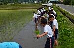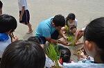 今日は、『分げつ』という(稲を5本に束ねて植えかえる)作業をしました。