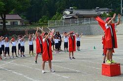 運動会では、全校児童と会場の皆様で一緒に楽しくおどりたいと思います。
