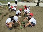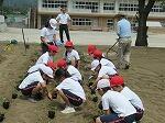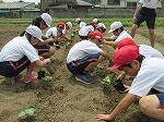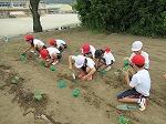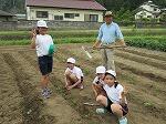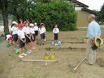 農園をかしてくださっている、栗原さんのアドバイスを受けて苗を丁寧に植えつけることができました。