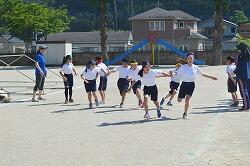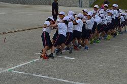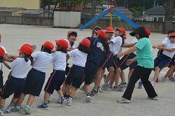 1年生から6年生までの全校生が、力を合わせ綱を引きます。