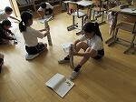 ↑理科:校庭で燃焼実験 ↑算数:「点対称」の説明中