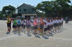 全校生89名を6チームに分け、全校児童でリレーを行います。