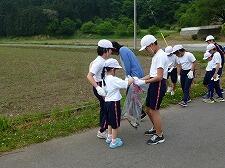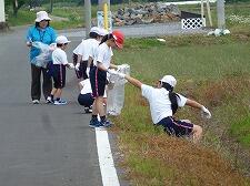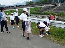 なかよし班ごとにゴミ拾いをしながら、永野川まで歩きました。