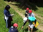 子どもたちは、タンポポやモンシロチョウ、ツツジ、ホトケノザなど様々な春の生き物を見つけて、