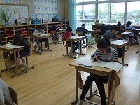 寺尾小の教室内には、ページをめくる音、鉛筆の音が響きます。