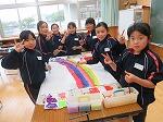 今日は、『クラスのシンボルフラッグ』みんな作りました。