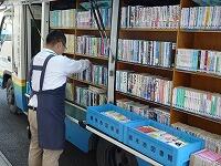 今日は、栃木市移動図書館「ブックシャトル・あじさい号」が寺尾小にやってくる日です。