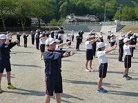 今朝は、集団行動についての確認と、準備運動の練習を行いました。