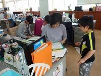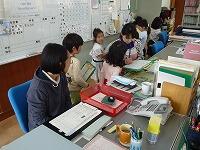 2時間目終了後、たくさんの子どもたちが本を借りに家庭科室に集まりました。