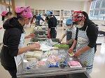 まずは、5、6時間目の家庭科でプレゼントのサンドウィッチを心を込めて作りました。