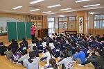 栄養教諭から献立の紹介をしていただき、給食に感謝して今日もおいしくいただきました。